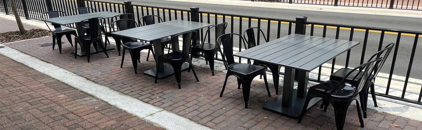 Commercial grade outdoor chairs and tables provide durable seating for restaurant, café, and bar patios. Built for frequent use and outdoor conditions, these pieces support reliable performance while offering styles that complement your space.