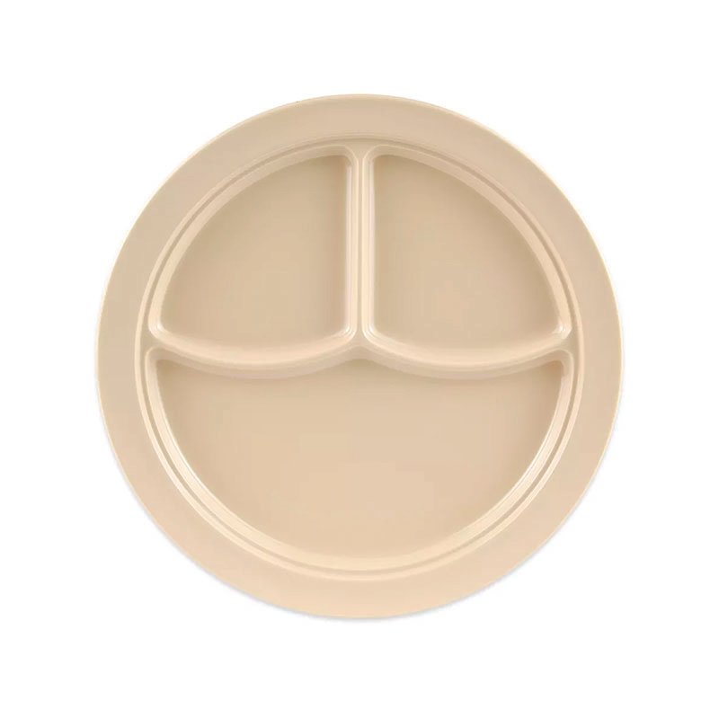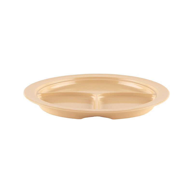10″ Diameter x 3/4″ Height, 3 Compartment Plate, Tan Color (No Lid), Melamine, BPA Free, Dishwasher Safe, Break-Resistant, Shatter-Resistant, No Microwave, No Oven, NSF