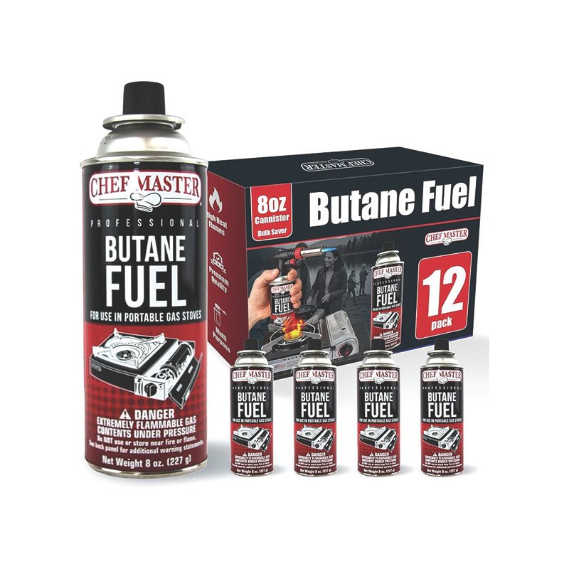 Chef-Master™ Butane Fuel, 8 oz. can, 2-4 hours burn time, Hazmat, UL (12 per case)