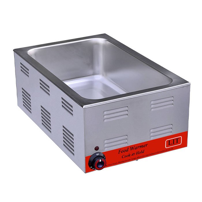 Countertop Warmer, wet operation, accepts 12″ x 20″ full size pan or fractional size pans, adjustable thermostat, cycling indicator pilot light, stainless steel construction, 1500 watts, NEMA 5-15P, 120v/60/1-ph, 12.5 amps, cULus, NSF