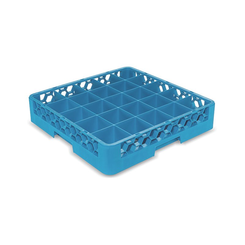 Carlisle – OptiClean™ Dishwasher Glass Rack, 25-compartments (3-1/2″ x 3-1/2″), full-size, holds glasses up to 3-1/4″ in diameter with inside height of 3-1/4″, double-wall construction, quick draining, positive stacking, four-way tracking, comfort curve handles on all 4 sides, polypropylene, textured finish, blue, NSF