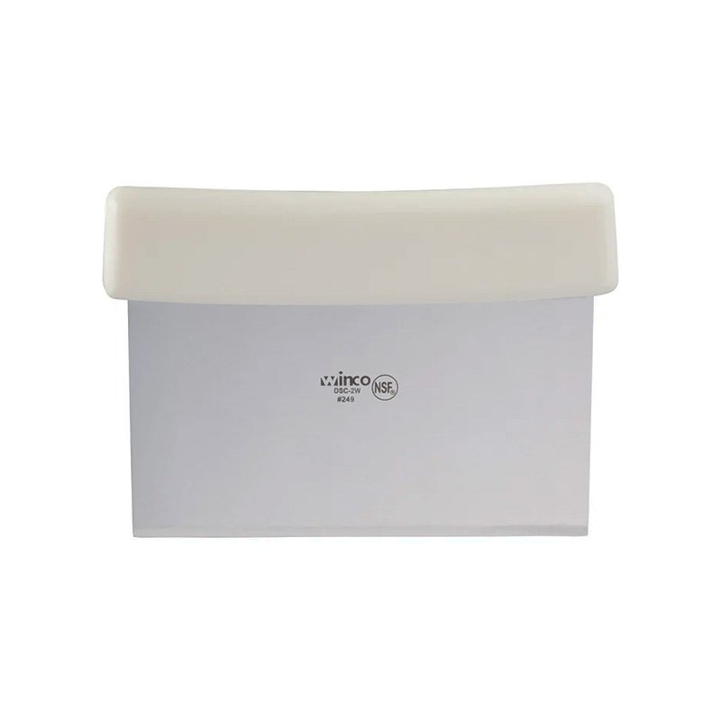 The DSC-2W Dough Scraper is a fundamental tool for any bakery, pizzeria, or pastry shop. Featuring a sharp 6″ x 3″ stainless steel blade, it is perfectly suited for portioning dough, scraping clean work surfaces, and lifting delicate pastries without tearing. The white plastic handle provides a comfortable, secure grip for repetitive tasks, while the seamless transition between the blade and handle ensures a sanitary tool that is easy to maintain. Whether you are clearing flour from a wooden prep table or cutting precise rolls, this heavy-duty scraper offers the rigidity and control needed for professional results.