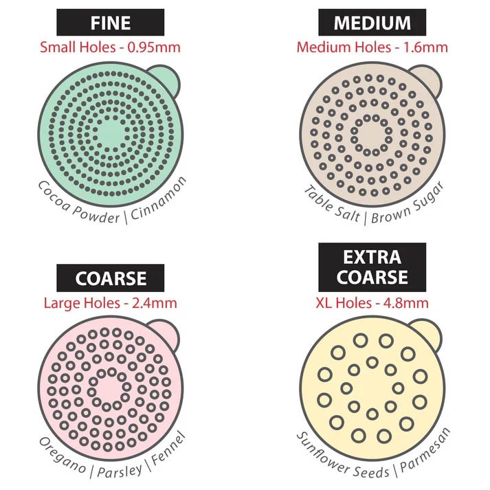 - Perforations range from Fine to Extra-Coarse for a variety of flavor enhancements