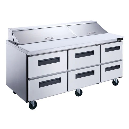 Dukers 6-Drawer Food Prep Table Refrigerator Stainless Steel DSP72-18-D6