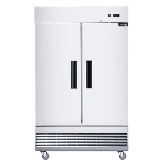 The Dukers D47EF reach-in commercial freezer is the perfect solution for food trucks and businesses that need reliable performance in a compact, two-door design. Its two doors are accented with high-quality brushed stainless steel for both the interior and exterior, ensuring durability and easy cleaning in tight, high-traffic spaces. The heavy-duty 3/4 HP compressor is bottom-mounted for improved efficiency and better cooling, even in demanding environments. Digital controls allow you to precisely adjust and maintain the ideal temperature. The auto-defrosting system helps reduce energy costs and maintain consistent freezing temperatures. Six adjustable shelves provide flexible storage options to accommodate various products and packaging sizes. Designed with a slim profile and compact footprint, it fits seamlessly into food truck layouts without sacrificing storage capacity.