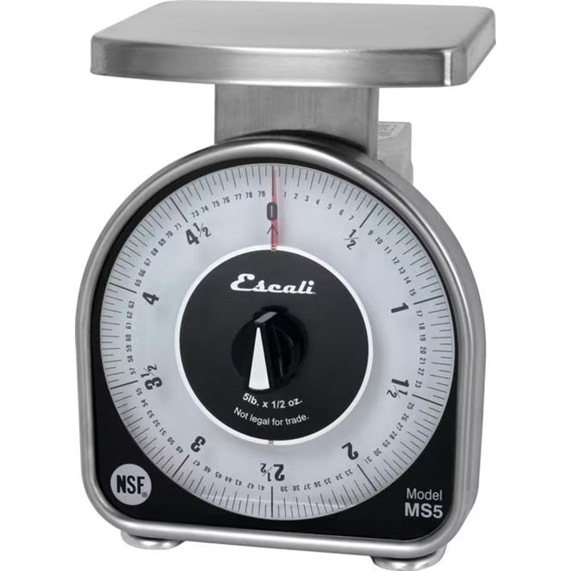 San Jamar – Escali Mechanical Dial Scale, 6-1/2″W x 6-3/4″D x 8-1/2″H, 5 lb. x 1/2 oz., 6″ x 4-5/8″ platform, shatterproof dial cover, tare function with rotating dial, water resistant, stainless steel, NSF, 1 year warranty standard
