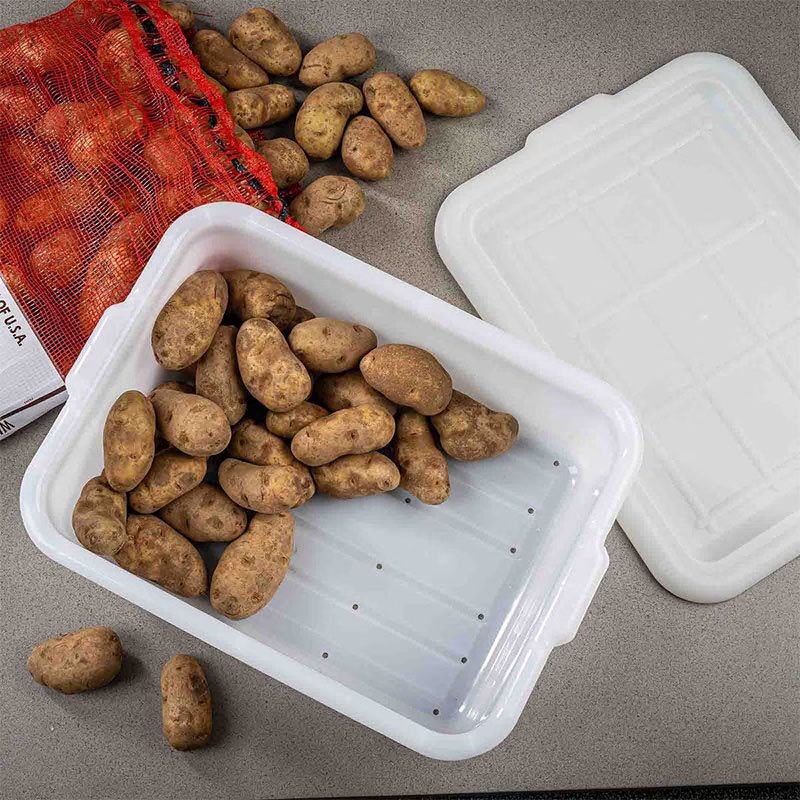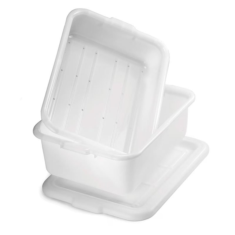 Tote Box, 7 gallon, 21-1/4″ x 15-1/2″ x 7-1/8″, dishwasher safe, special blend, high density polyethylene, white (temperatures as low as -30°F/-34°C) FDA approved material, Made in USA, NSF