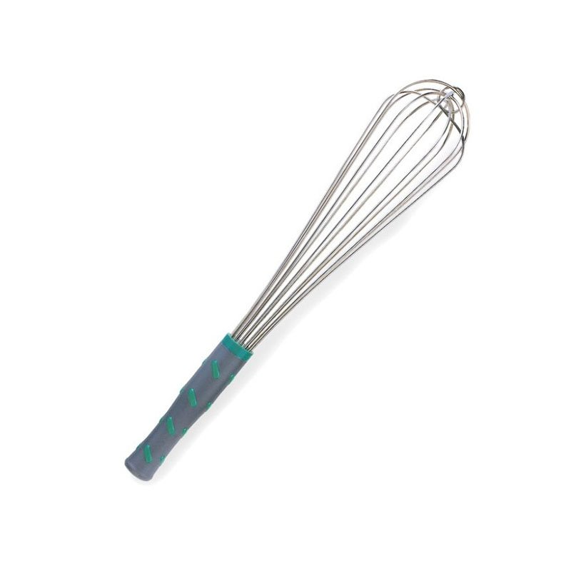 French Whip, 16″ long, one-piece, aqua nylon handle, heat resistant up to 475° F (246° C), textured handle with end knob, 18-8 type 304 stainless wires with center reinforcement wire, NSF, imported, Jacob’s Pride® Collection, Limited Lifetime Warranty (Refer to vollrathfoodservice.com for full warranty policy)