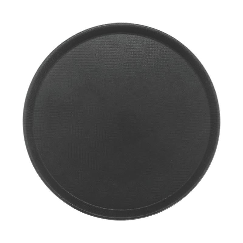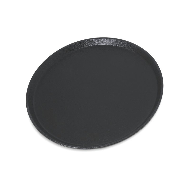 Serving Tray, 14″, round, non-skid, fiberglass, stain and odor resistant, black, 5 year warranty, std. (no charge)