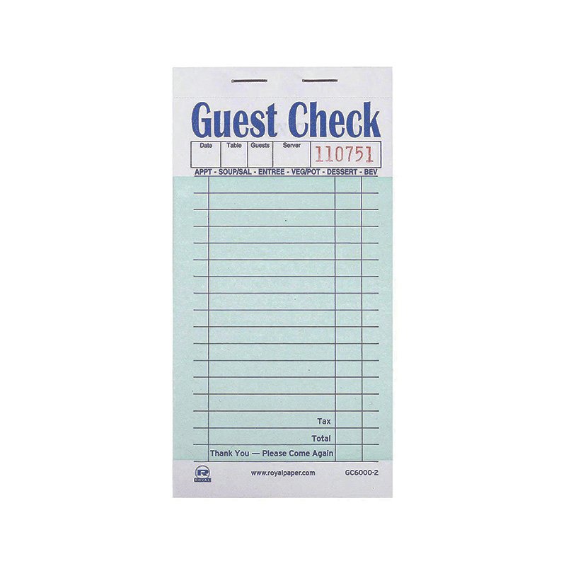 - 2-Part booked guest checks provide an additional copy with carbon insert