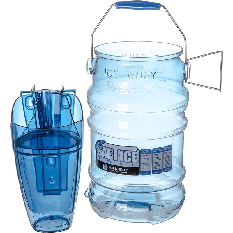 San Jamar – Saf-T-Ice® Value Pack, includes: tote, 6 gallon, polycarbonate, rubber handle, clear blue, with new tri grip feature and 64 oz. guardian scoop