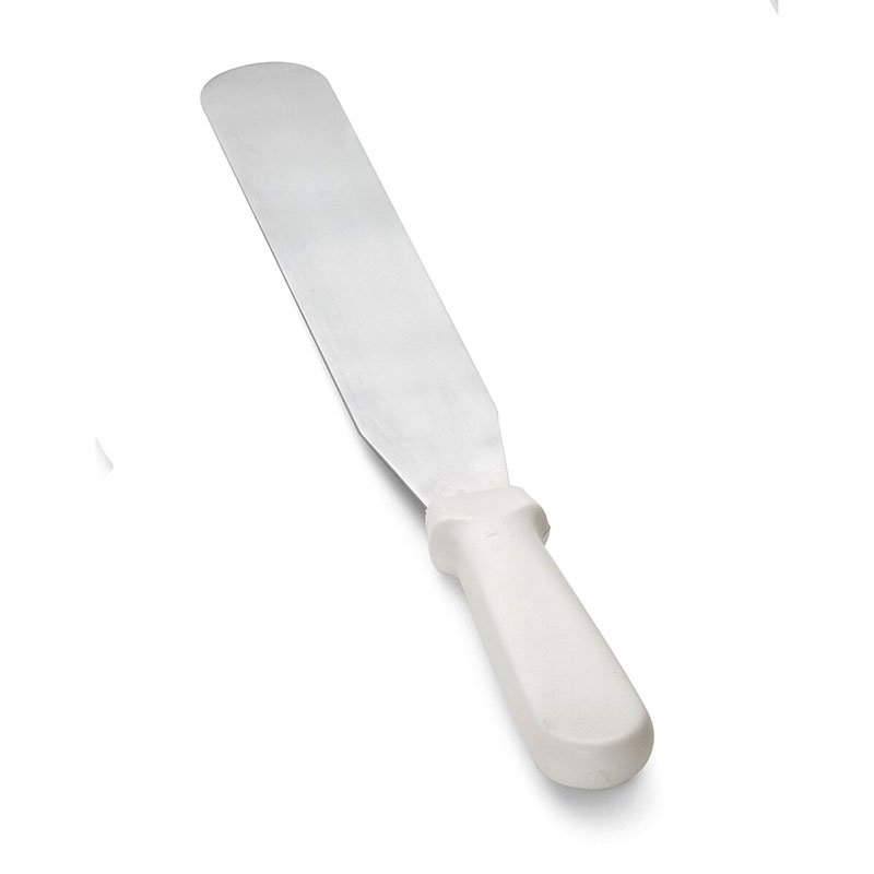 Icing Spatula, 10″, dishwasher safe, stainless steel blade, white ABS handle