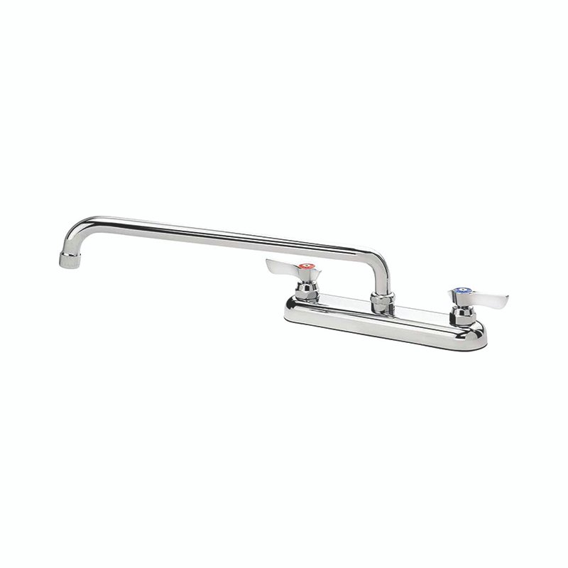 Krowne Royal Series Faucet, splash-mounted, 8″ centers, 14″ swing spout, quarter-turn ceramic cartridge valve, low lead compliant, NSF, Includes internal check valves to prevent backflow & cross contamination, 3 year warranty, standard