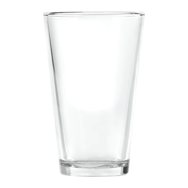 Beverage Glass, 12 oz., stackable, DuraTuff®, Restaurant Basics (H 5″; T 3-1/4″; B 2-1/8″; D 3-1/4″)