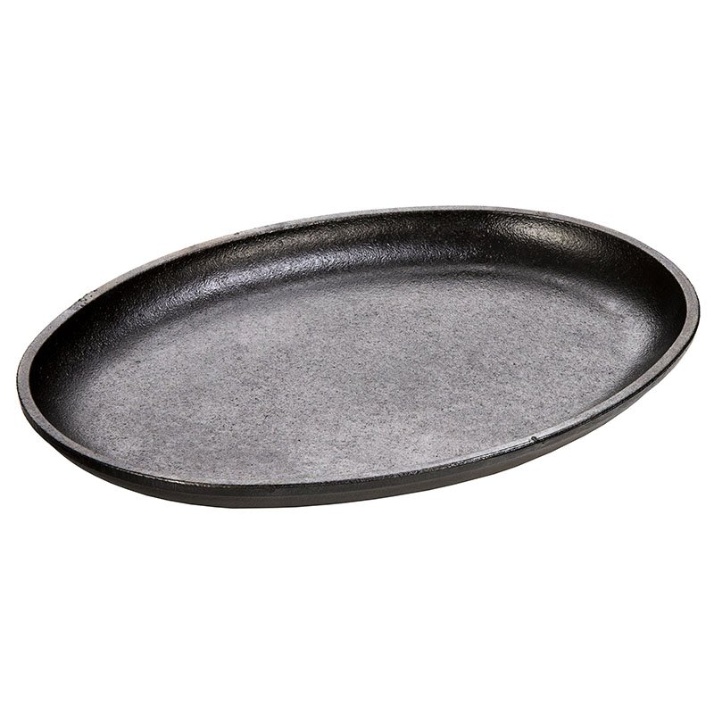 Serving Griddle, 10″ x 7-1/2″, oval, without handle, stove top/induction/grill/campfire/oven safe, seasoned with oil, hand wash only, cast iron, Made in USA