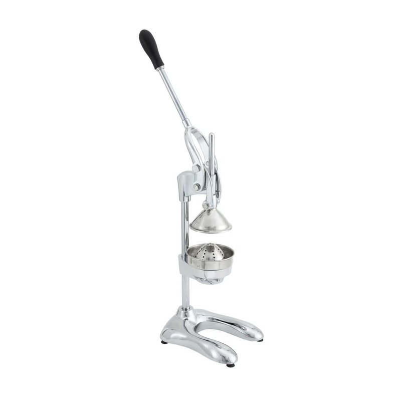 The JC-19 Premium Hand Press Citrus Juicer is a heavy-duty manual extractor designed for efficiency and durability in juice bars, cafes, and home kitchens. Featuring 18/8 stainless steel construction for the strainer, funnel, and press, it provides a sanitary and acid-resistant surface that won’t corrode over time. To prevent sliding, the base is reinforced with rubber suction grips, and the 4.75″ strainer cup is perfectly sized for lemons, limes, and smaller oranges.