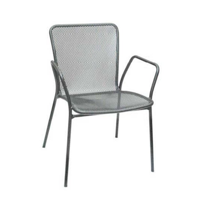 • Metal Circle Perforated, Square Back Outdoor Chair – Grey with Arms