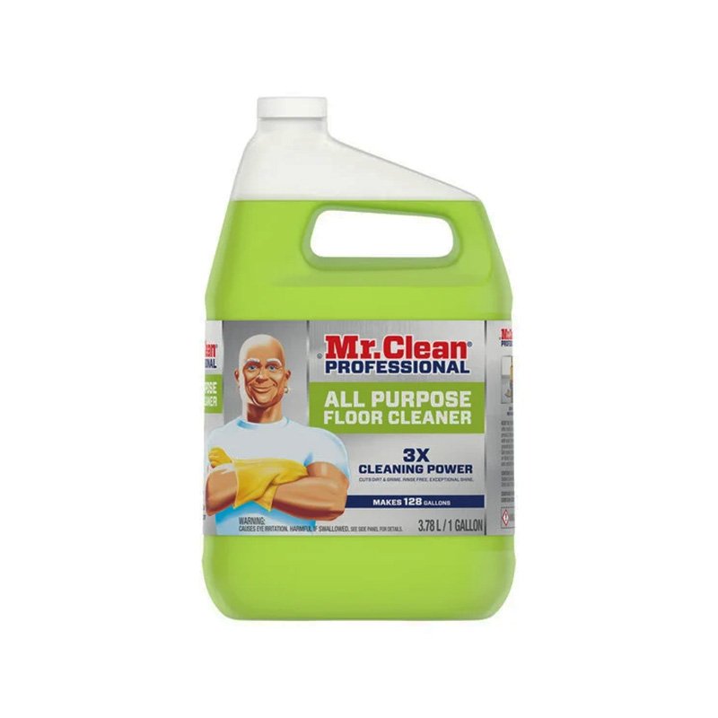 Renew the shine of your floors with the Mr. Clean Professional 02621 concentrated floor cleaner. Capable of being used on a variety of finished floors and surfaces, this cleaning solution eliminates tough, greasy dirt upon contact. With a strategic blend of nonionic and anionic surfactants, soil removal is vastly improved due to the cleaning power of the solution. This solution is safe for floors made of ceramic or vinyl tile, varnished hardwood, and terrazzo. Alternatively, it can be used on patio furniture, bathrooms, walls, and garbage cans as a versatile all-purpose cleaner