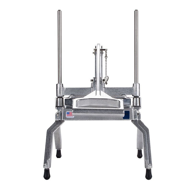 Easy LettuceKutter™, 1″ square, scalloped blades, interlocked blades avoid flexing, replaceable blades, angled, cast aluminum legs with no-slip feet, manual locking pin keeps pusher block safely in place, NSF. 2 year parts & labor warranty, standard