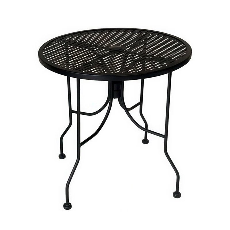 Elevate your venue’s curb appeal with the Round Perforated Metal Table, featuring a distinct square-hole punch design. Engineered for the rigors of high-volume hospitality, this table is built from extra heavy-duty metal to ensure it stays grounded and durable. The sleek, Textured Black powder-coated finish doesn’t just look sophisticated; it provides a rugged shield against the elements, making it a premier choice for both sun-drenched patios and stylish indoor industrial spaces. The circular silhouette is optimized for social interaction, while the square-perforated surface allows for effortless water runoff and air circulation—keeping the table dry and the metal surface comfortable for guests. Each unit comes as an all-in-one package, including a matching commercial-grade base and a 2-1/2″ umbrella hole to help you create a shaded oasis. Thanks to our 7–10 day QuickShip turnaround, you can overhaul your seating layout in record time.