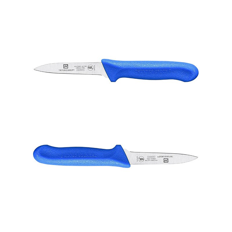 Paring Knife, 3-1/4″, chef’s style, high carbon/no stain blade, blue polypropylene handle, NSF, 2 pack