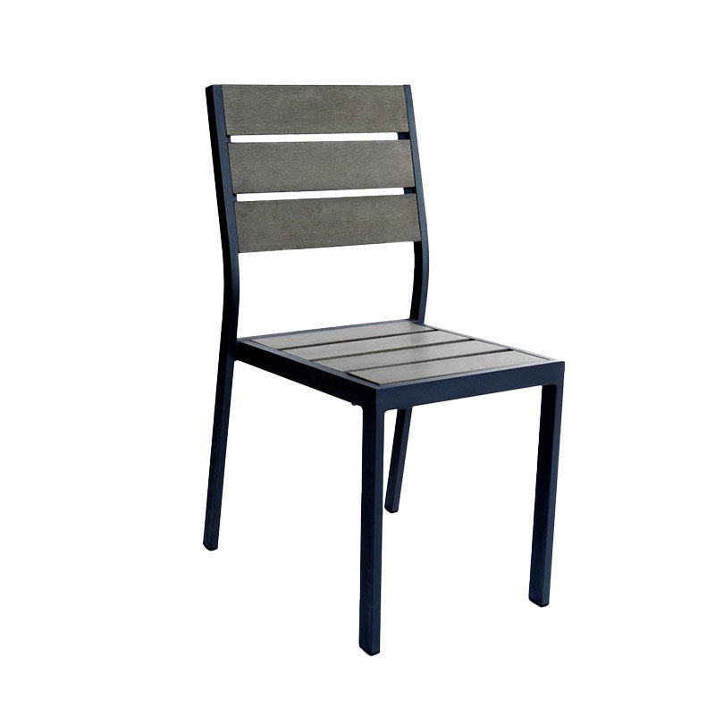 Bring a sophisticated, urban edge to your patio with the Perma-Wood™ Outdoor Dining Chair (Model #PW80118). This chair features slats finished in a stunning Grey that simulates Antique Brushed Teak, offering the weathered, high-end look of reclaimed wood without the risk of splintering, warping, or fading. The cool grey tones are perfectly complemented by a Dark Gray powder-coated aluminum frame, providing a modern monochromatic aesthetic that fits seamlessly into contemporary restaurant and hotel environments. At just 12 lbs, this chair is incredibly easy for staff to move and stack, yet its aluminum construction makes it naturally rust-proof and highly durable for high-traffic use. With a standard 18″ seat height, it provides ergonomic support for any dining-height table. To ensure your business is ready for the season without the stress of setup, these chairs ship fully assembled, allowing you to update your seating layout the moment they arrive.