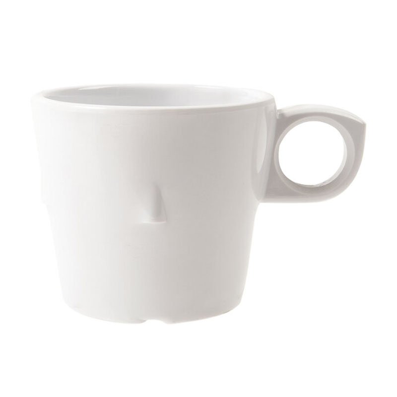 Supermel™/Bake & Brew™ Cup, 7-1/2 oz. (7.7 oz. rim full), 3-1/4″ dia. x 3″H, conic stacking, break-resistant, dishwasher safe, melamine, white, NSF