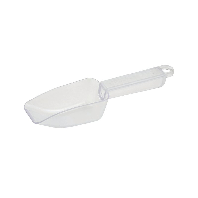 • Economy scoop• 6 oz. capacity• 4 5⁄8″ x 2″ x 1 3⁄4″ size• Integrated hang hole• Polycarbonate construction• Clear with blue tint