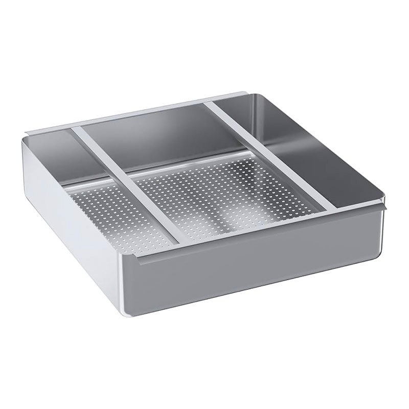 Pre-Rinse Basket with Stainless Steel Slides | Stainless Steel Scrap Basket For Commercial Sinks | 19 3/8 in. x 19 3/8 in. x 3 1/2 in.