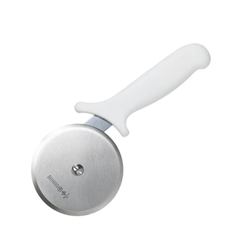 Pizza Cutter, 4″ wheel, stainless steel blade, molded white polypropylene handle, treated with sanitized antimicrobial protection (hang tag)