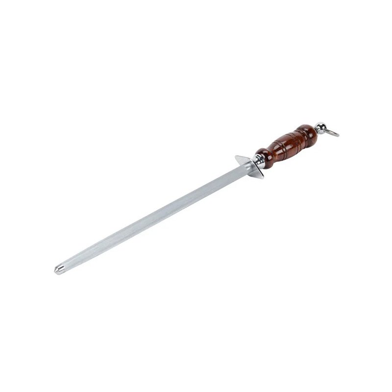 Sharpening Steel, 12″ regular cut, round, loose ring, dark wood handle, with hangtag
