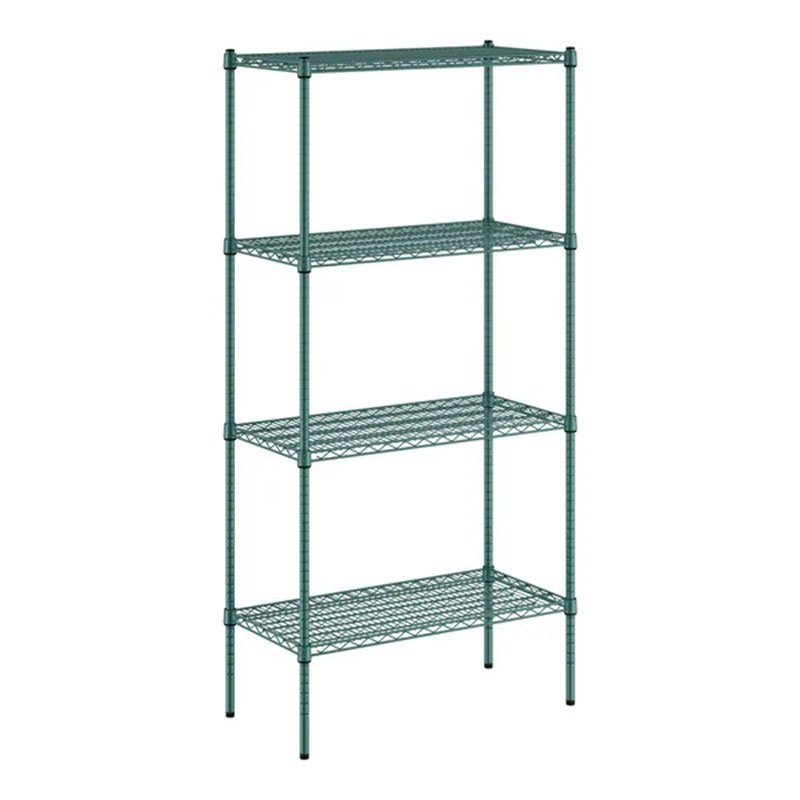4 Shelf unit, wire, 36″W x 18″D x 74″H, (3) trusses, green epoxy coating, NSF (shelf clips included)