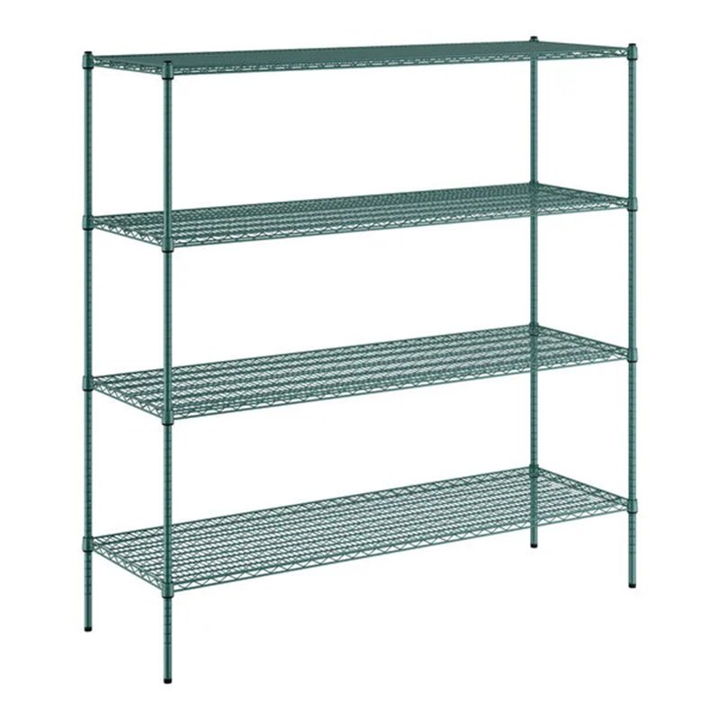 4 Shelf unit, wire, 72″W x 24″D x 74″H, (3) trusses, green epoxy coating, NSF (shelf clips included)