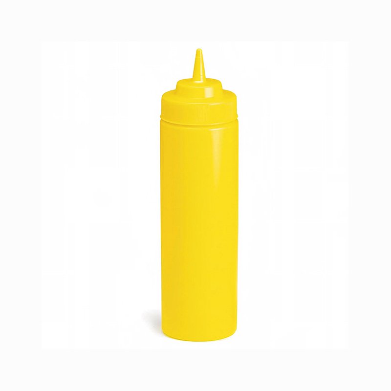 WideMouth™ Squeeze Bottle, 12 oz., 53mm opening, mustard, standard tip, dishwasher safe, soft polyethylene, yellow, Made in USA, NSF (must be purchased in multiples of 36 each)