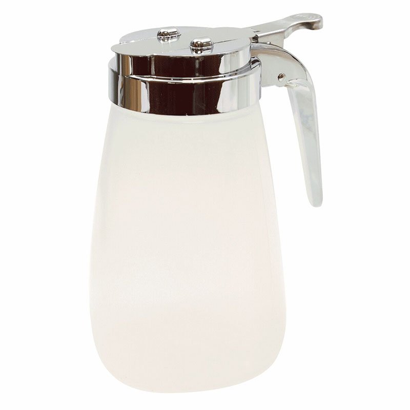 Syrup dispensers, two-piece dispenser features a comfortable handle and a thumb-controlled spout for a clean, drip-free pour. Perfect for syrups, honey, and thick sauces, these dispensers offer durability with a sturdy plastic cup, making them ideal for everyday use. Add a touch of retro charm and functionality to your tabletop with these reliable, easy-to-use syrup dispensers.