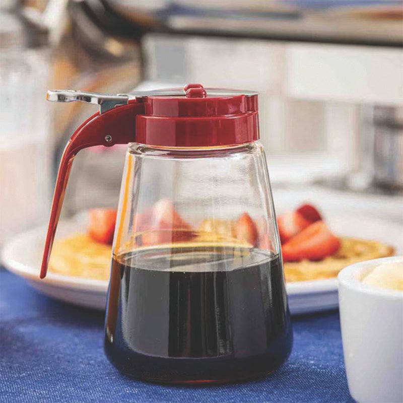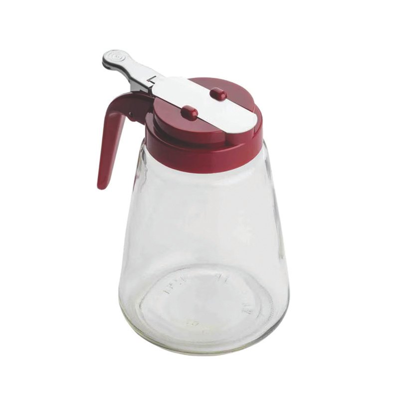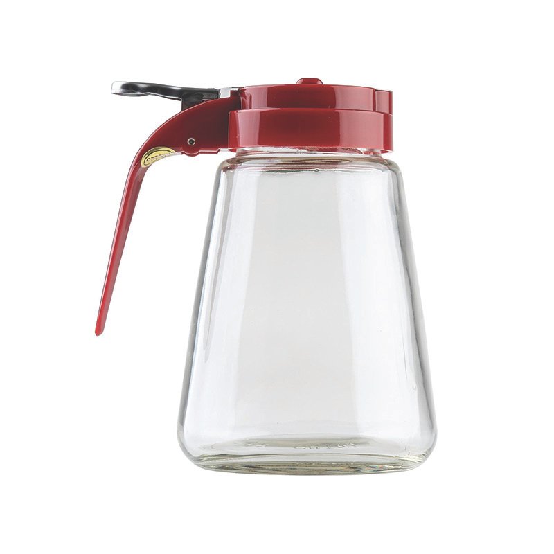 Modern Glass Dispenser, 12 oz., dishwasher safe, red ABS top (fits rack model number 1370R)
