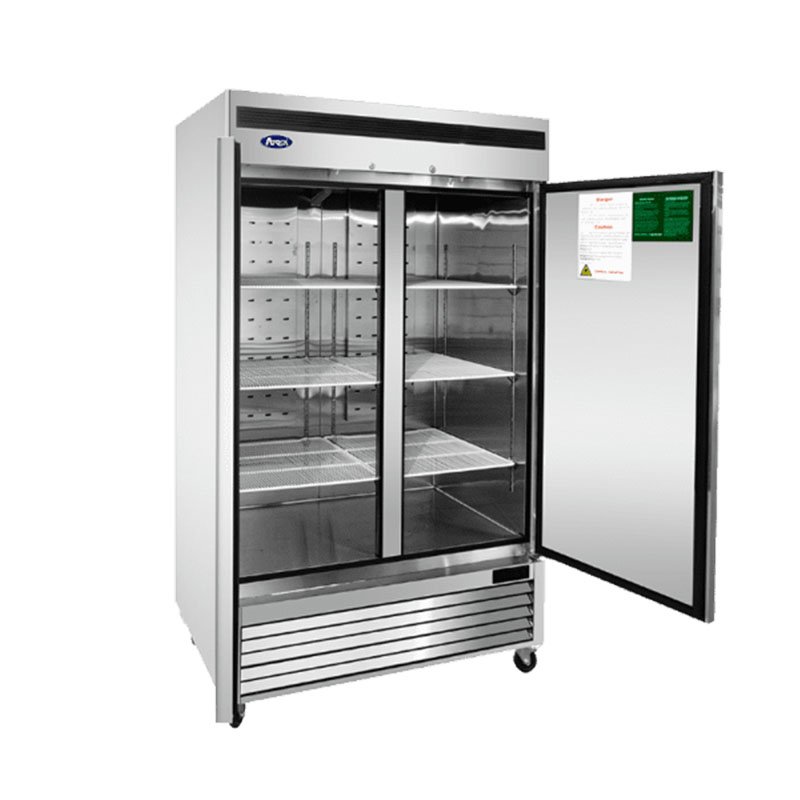 Built with a bottom-mounted compressor, this unit uses environmentally friendly R290 refrigerant while allowing for easier maintenance and improved airflow. The stainless steel exterior and interior provide long-lasting durability and a clean, professional appearance that stands up to daily use. An electronic temperature controller keeps the unit operating between 35°F and 38°F, ensuring safe and reliable food storage. Down duct refrigeration delivers even air distribution throughout the cabinet, helping maintain consistent temperatures from top to bottom. Inside, LED lighting enhances visibility, while three pre-installed shelves per section make it easy to organize your products. Recessed door handles offer a sleek look and easy access, and standard door locks provide added security. Magnetic door gaskets ensure a tight seal to maintain efficiency, and pre-installed casters allow for smooth mobility and convenient cleaning.