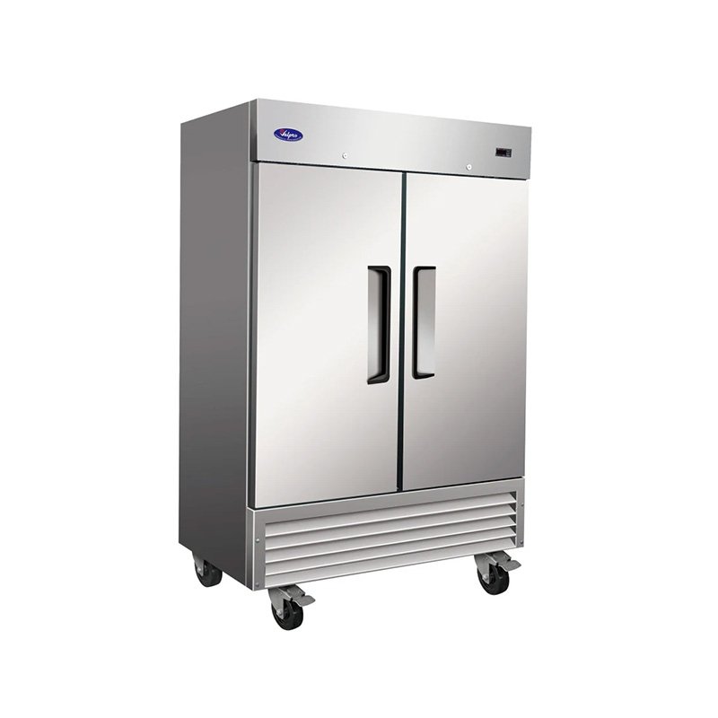 Freezer, reach-in, two-section, 49 cu. ft. capacity, self-contained bottom mounted refrigeration, digital thermostat with LED display, (6) adjustable epoxy coated wire shelves, LED interior lighting, (2) solid self-closing locking doors, 430 stainless steel exterior, 304 stainless steel interior, (4) 4″ casters (2) locking, R-290 Hydrocarbon refrigerant, cord with NEMA 5-15P, 1.0 HP, 115v/60/1-ph, 9.0 amps, ETL, ETL-Sanitation, ENERGY STAR® Freight discounts available, contact factory for details 2 year parts & labor warranty, standard 5 year compressor warranty – 2 year parts & labor, additional 3 year compressor warranty (parts only), standard