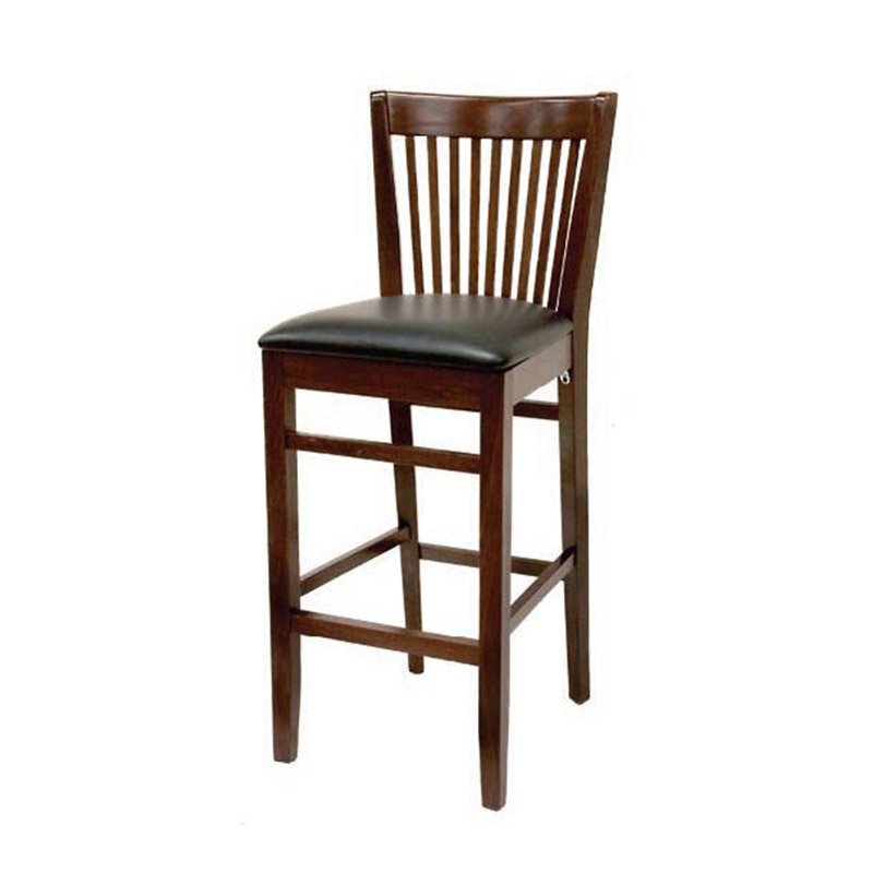 The Wood Flared-Back Barstool offers a unique, wide-profile design that prioritizes guest comfort without sacrificing style. Characterized by its elegant, outward-tapering backrest, this chair provides a slightly wider seating surface (19″ left-to-right) than standard models, making it a favorite for upscale dining and relaxed cafe environments. Despite its refined silhouette, it is built for commercial rigors, weighing a sturdy 19lbs and featuring a high-quality wood frame. Available in Dark Mahogany, Cherry, or Walnut, the flared-back design acts as a subtle statement piece for your dining room. The 100k abrasion-rated black vinyl seat ensures that your investment remains looking brand new, even in the highest-traffic locations. With our QuickShip (7–14 working days) program, you can enjoy a custom-look seating upgrade on a remarkably fast timeline.
